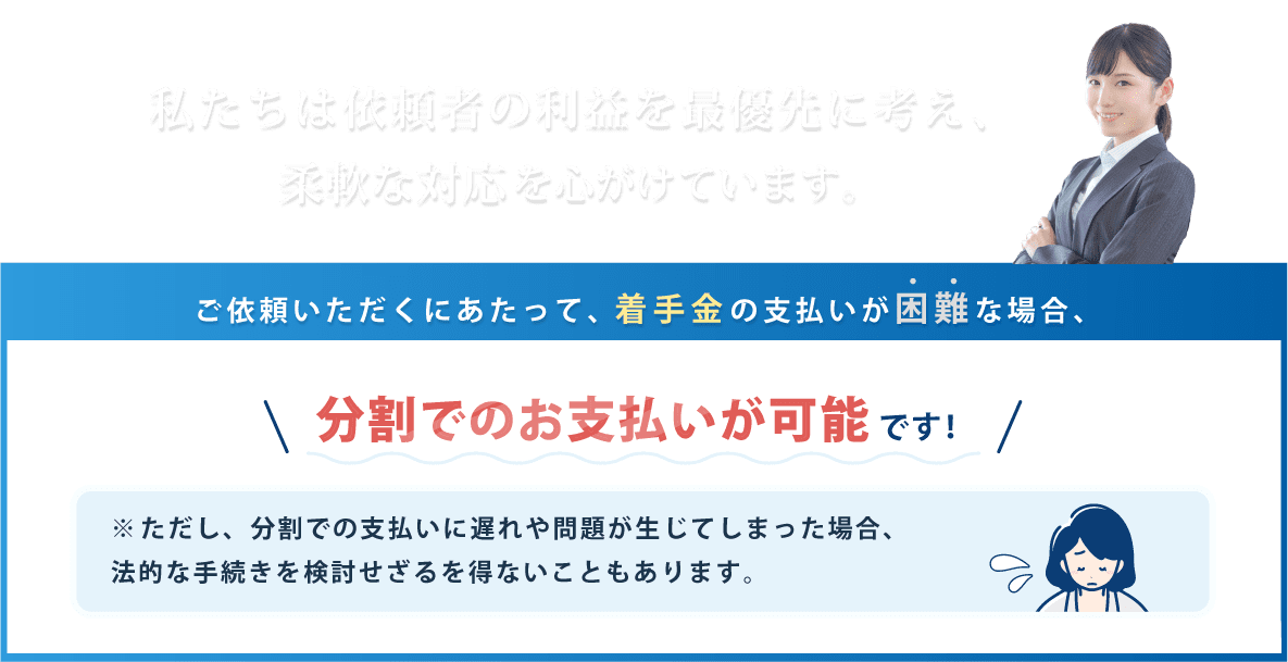 分割払いも対応しております!まずはお気軽にご相談ください!